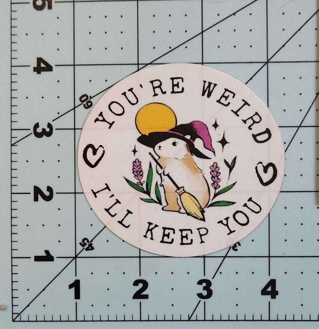 Celebrate unique bonds with the Witch Hamster Friendship sticker. This 4-inch diameter hand-cut vinyl decal combines cute and spooky elements, making it perfect for personalizing laptops, water bottles, or phone cases. Its durable material ensures long-lasting use, ideal as a gift to express quirky friendship in a charming way.